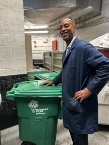 It took no convincing for the passionate Park Hyatt DC team to start their hunt for a hauler who could collect their food waste. The hotel, including Blue Duck Tavern located within the hotel, began composting with Compost Crew in October 2023. They have diverted over 46,350 pounds of food waste in less than a year. While the hotel does its best to reduce production of excess food and to donate what it can to food rescue organizations, businesses in the hospitality industry are prone to waste given the high volume and turn-around of patrons. Jose Felder, Executive Steward at Hyatt Hotels, and Jean-Claude Plihon, culinary and F&B Director, were two major players who were adamant about initiating composting to Park Hyatt DC.